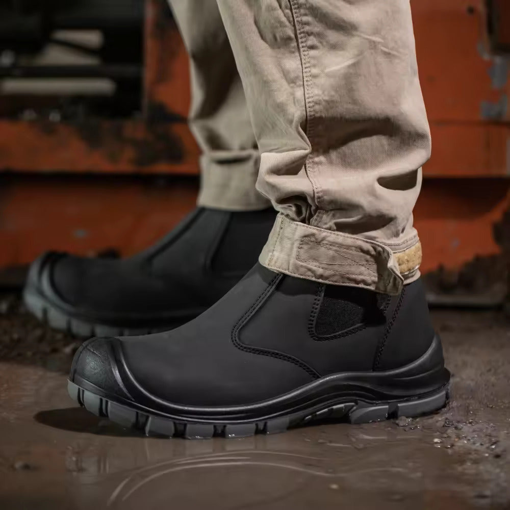 Resistentes zapatos 100% cuero, con punta de acero y suela anti perforante