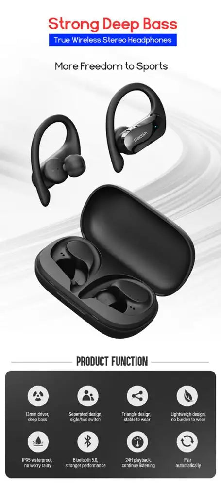 Dacom G05 Sport - Auriculares Bluetooth 5.0 TWS inalámbricos con micrófono, 30H Playtime Stereo Sound Sports Headsets, IPX5 a prueba de sudor inalámbricos para correr, gimnasio, ejercicio, entrenamiento