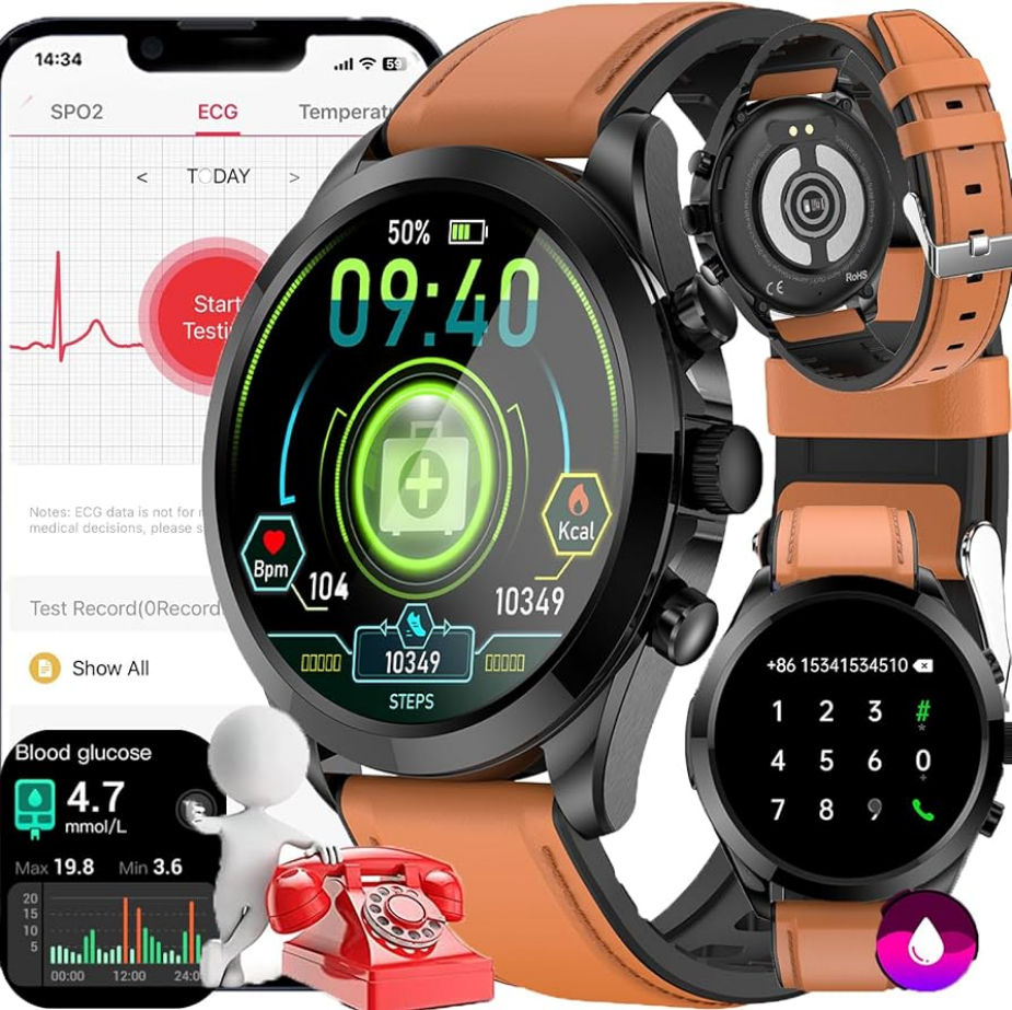 Reloj Inteligente de salud ET440 con ECG PPG BT con brazalete de cuero